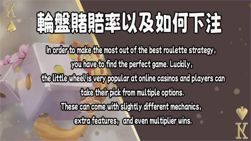 不同輪盤遊戲的賠率和賭注各不相同,但最終賭場的利潤率是相同的。 雖然許多其他遊戲需要製定策略來為玩家提供盡可能最好的賠率,但輪盤賭只需要玩家下注才能獲勝。